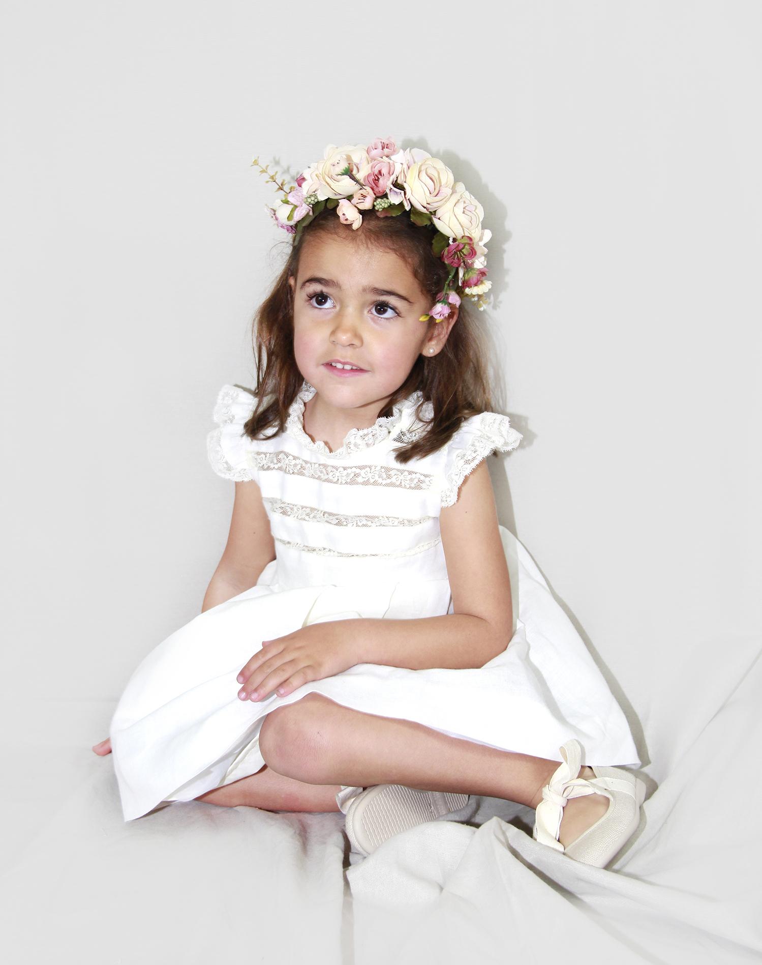 Vestido de hilo con puntillas. Posibilidad de elegir largo de mangas. Se hacen por encargo. En tallas pequeñas jesusito con braguitas. Colección HUESO